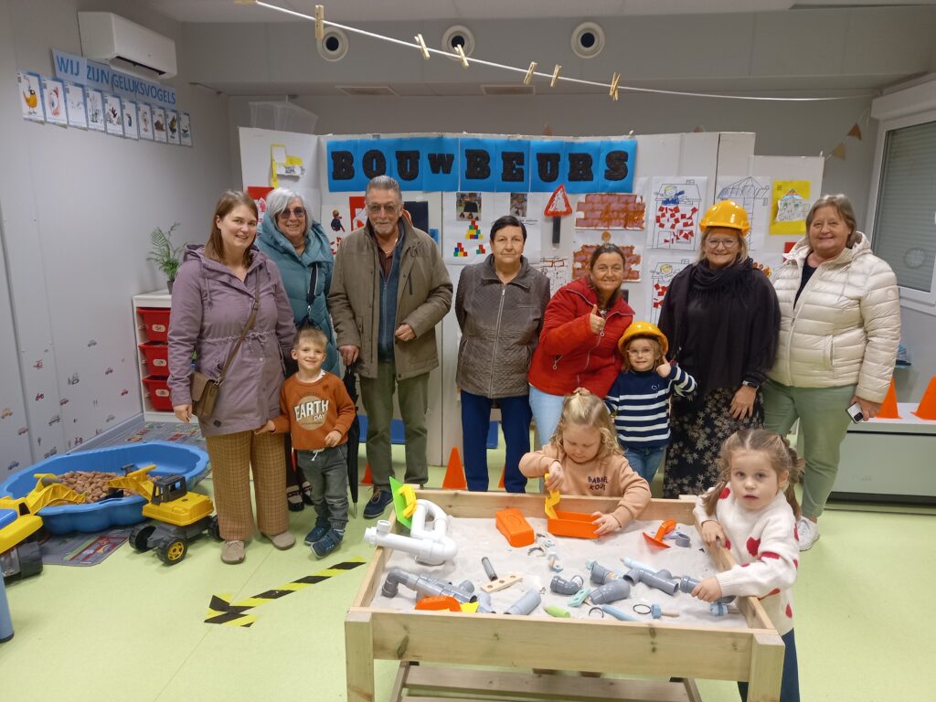 Ouders en grootouders waren op 24 oktober ll. uitgenodigd om een kijkje te komen nemen en ze waren mega onder de indruk van hun kroost. De taakverdeling onder de verschillende klassen verliep opperbest, de projecten pasten als puzzelstukjes in elkaar. Directeur Els heeft ook haar helm opgezet, veiligheid voor alles, en volgt de werken met bijzondere aandacht op!